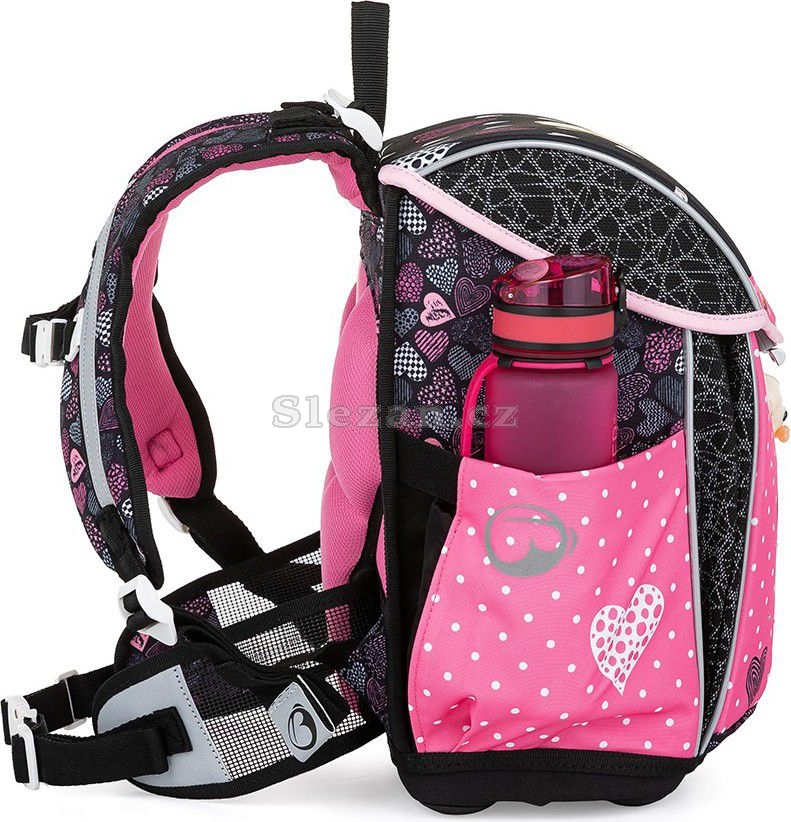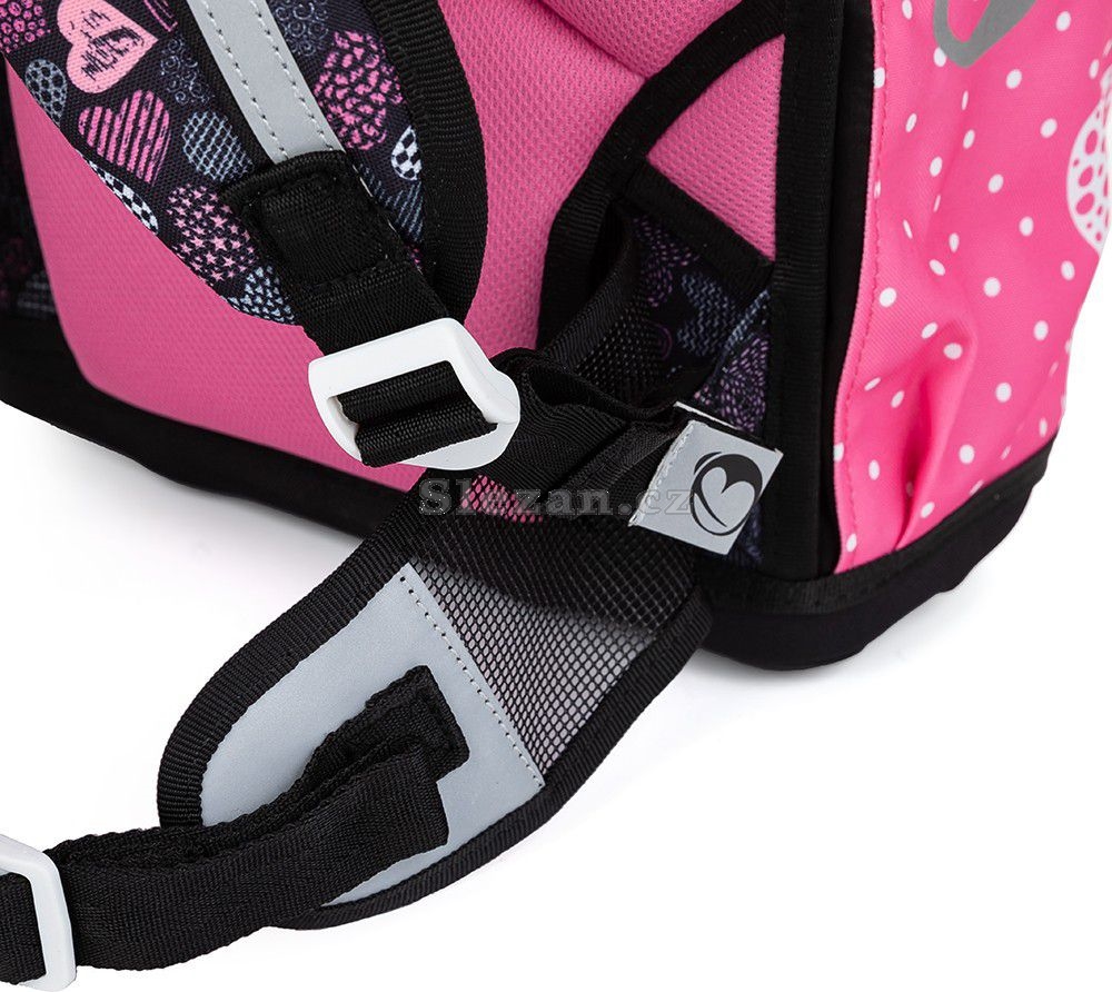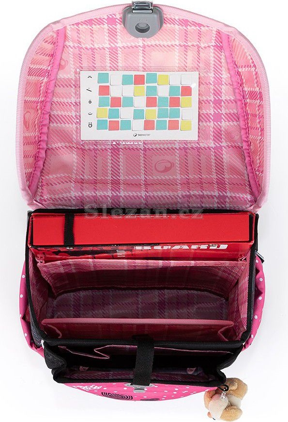 Kromě jednokomorové aktovky s ergonomicky tvarovanými zády, reflexními prvky, pevnou konstrukcí a měkkými ramenními popruhy je součástí setu pouzdro a sáček na přezůvky nebo tělocvik