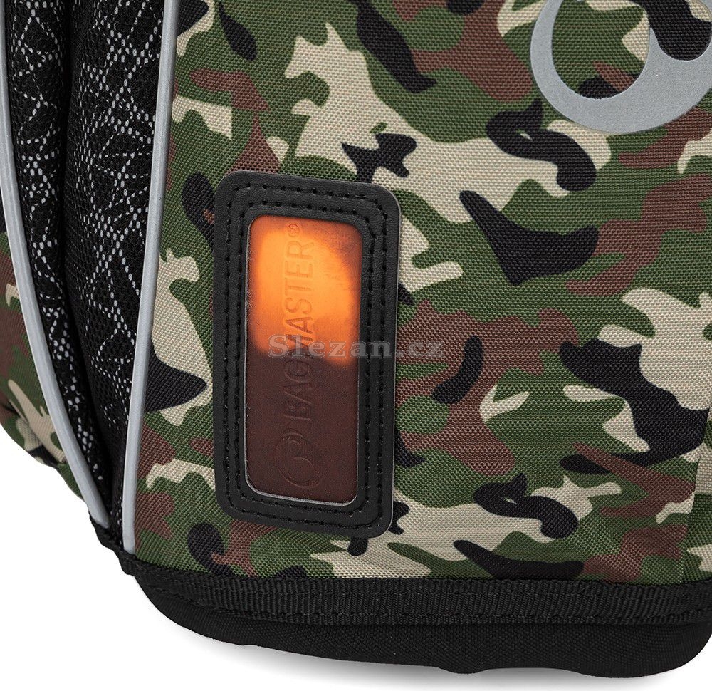 Aktovka má přehlednou a prostornou komoru, velkou přední přihrádku s organizérem, boční kapsu na láhev a reflexní prvky