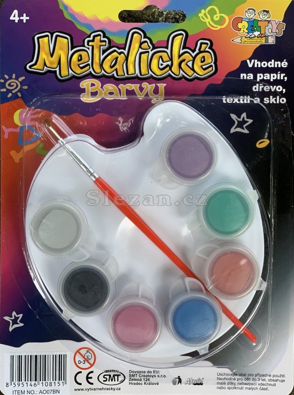 Obsahuje 7 metalických akrylových barev , paletu a štětec.