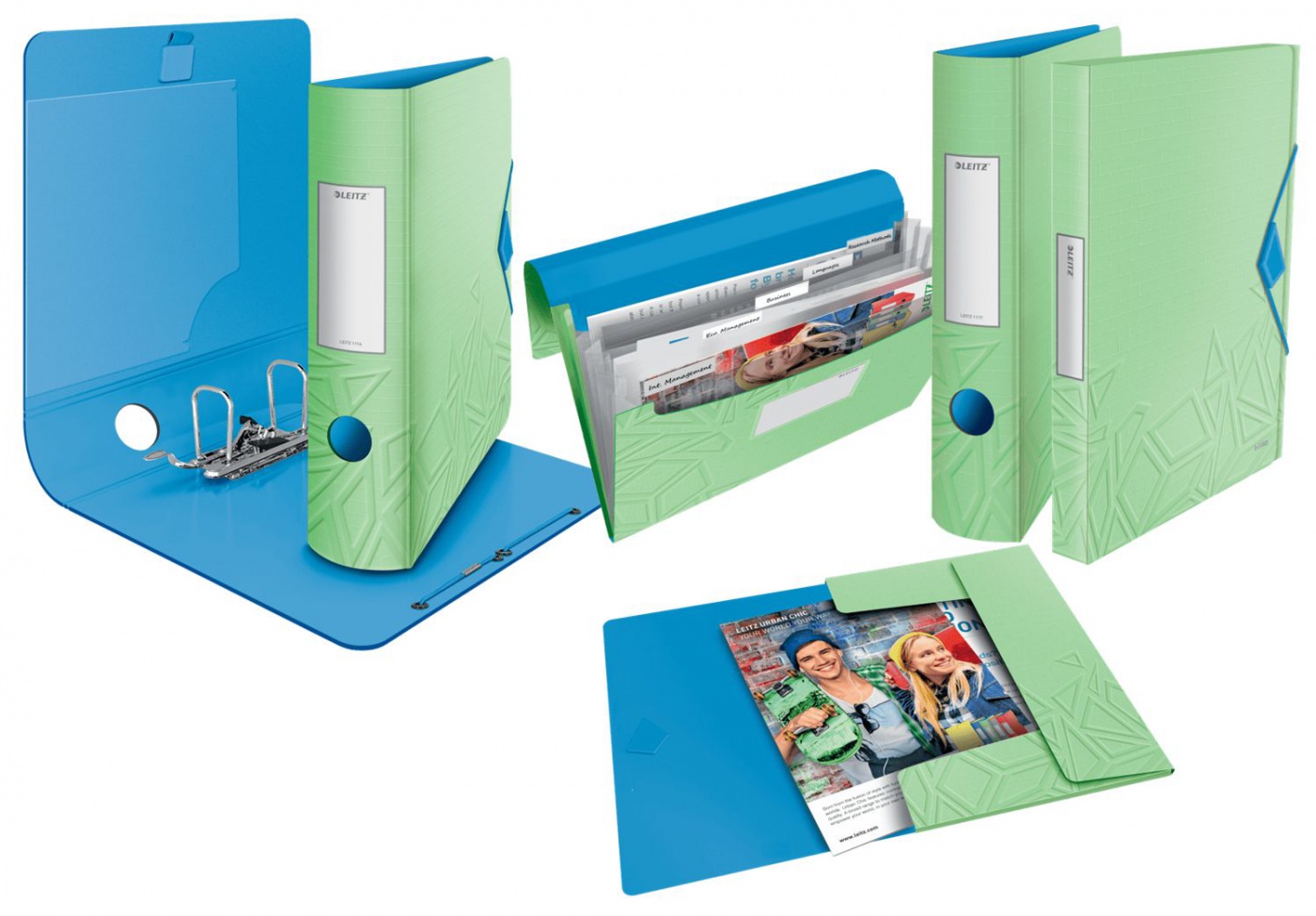 Pákový pořadač v kontrastních výrazných barvách Urban Chic z lehkého materiálu v ergonomickém designu, který odpovídá vašemu aktivnímu životnímu stylu.