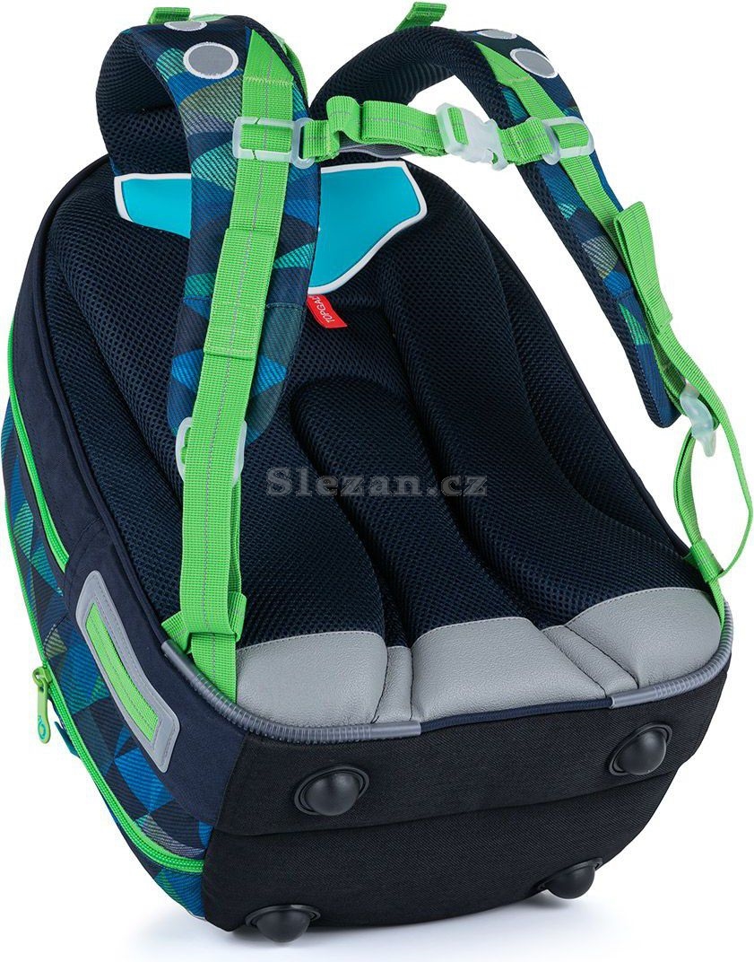 Hlavní charakteristika: dvě komory a hluboká přední kapsa přední komora členěná organizérem pevná anatomicky tvarovaná záda jednoduchý, stylový design Dvoukomorový batoh MIRA je objemný a díky tomu i oblíbený u všech vyšších chlapců na prvním stupni ZŠ. Doporučujeme jej od výšky cca 125 cm. Bude dobře sloužit nejméně do páté třídy základních škol, ale i déle! Záda batohu MIRA jsou tvořena pevným, anatomicky tvarovaným, polstrovaným systémem s lehkou hliníkovou výztuhou, která drží záda batohu ve správném prohnutí. Ramenní popruhy jsou polstrované, ergonomicky tvarované a nastavitelné v jejich spodní části na délku. V horní části je můžete utáhnout k zádům, tak aby batoh od ramen neodstával. Hrudní popruh je taktéž výškově nastavitelný a zajistí to, aby batoh nesjížděl z ramen i drobnějším klukům. Batoh má dvě hlavní komory, které pojmou vše potřebné. Zadní komora je o něco užší, ukládejte do ní ty nejtěžší učebnice. V zadní komoře je i praktická síťová kapsička na zip. Přední širší komora je členěna na dvě části polstrovanou přepážkou. Můžete tak od sebe oddělit učebnice a sešity, nebo učení a svačinku. Objemná je i přední oválná hluboká kapsa, uvnitř které je i jmenovka a odnímatelná karabina na klíče. Lahvičku na pití dejte do boční kapsy batohu. Vejde se do ní pohodlně lahev o objemu do 0,5 litru, třeba typu ZIVA. Ani na modelu MIRA jsme nešetřili reflexními plochami - najdete je na ramenních popruzích, boku batohu i na jeho přední části a v lemech přední komory a kapsy. Další vychytávky: zátěr proti dešti - látka nepromokne pevný materiál Topdura a nožičky na dně batohu poutko na zavěšení batohu na lavici poutko na přenášení batohu v ruce batoh byl testován v ITC Zlín Náš tip: K batohu můžete zakoupit pouzdro s dvěma klopami - najdete jej pod označením PENN 21019.