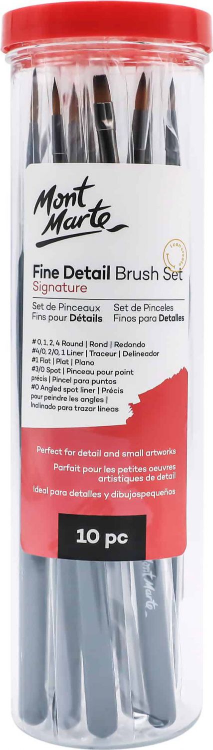 Sada štětců pro detailní kresbu. 10 ergonomických taklonových štětců v praktickém plastovém obalu: