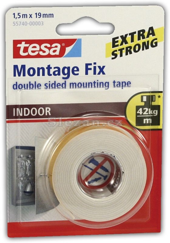 Extra silná přilnavost. Nosnost až 42kg na 1m pásky. Drží na obkladech, sádře, dřevě a většině plastů.