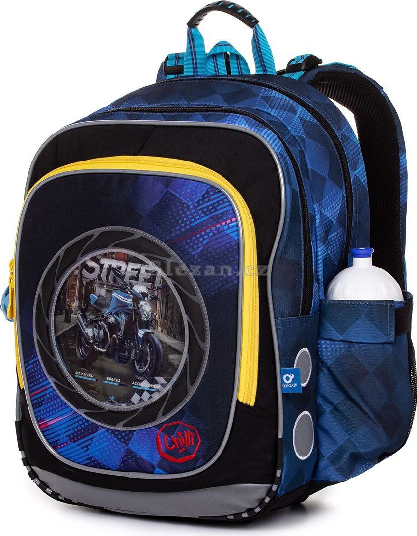 Máte doma malého motorkáře? Pak je batoh ENDY batoh právě pro něj! Je superlehký a v přední kapse má schovanou průhlednou kapsičku se 4 různými obrázky motorek, které si může měnit podle libosti, nebo si tam dát obrázek třeba své vlastní motorky... dvoukomorový batoh s velkou přední kapsou součástí jsou 4 vyměnitelné obrázky motorek pevná lisovaná záda a nízká váha 0,98 kg! Zádový systém je díky anatomicky tvarované lisované pěně ultralehký. I na zádech malého závodníka bude batůžek sedět jako ulitý. Ramenní popruhy jsou polstrované, ergonomicky tvarované a hlavně – dají se utáhnout v horní i spodní části batohu. Výškově nastavitelný hrudní pásek zajistí, že popruhy nebudou sjíždět ani z drobných zad.Nejtěžší školní potřeby dávejte vždy do zadní komory. Ta je širší než přední a pojme vše potřebné do prvních tříd ZŠ. Přední, užší komora unese vše ostatní a navíc v ní určitě využijete praktickou síťovou kapsu na zip. Jmenovka ukrytá v přední kapse nas síťovou kapsičkou pomůže batohy rozeznat, i když se ve třídě sejdou dva stejné. Jako bonus najdete na zipu přední kapsy parádní miniaturní motorkářskou helmu! Ale pšt, radši to neříkejte ségře, sedí totiž i na hlavu Bárbínám…K batohu můžete přikoupit i penál PENN 20013 ve stejném designu. Ten snadno umístíte do přední komory nebo do přední hluboké kapsy, kde určitě oceníte i odnímatelnou karabinku na klíče. Klidně ale přední kapsu můžete použít i na přenášení krabičky se svačinou. Pro lahvičku na pití jsme ušili pevnou kapsu na boku batohu.Reflexní prvky se budou zamlouvat hlavně rodičům, obzvlášť v zimním období. Proto jsme jimi na batohu opravdu nešetřili. Přesvědčit se můžete v detailních fotkách, kde máme batoh nafocený i ve tmě. Něco navíc: zátěr proti dešti odolné dno z materiálu TOPDURA opatřené nožičkami poutko na přenášení batohu v ruce a poutko na lavici batoh byl testován v ITC Zlín a prošel na jedničku Náš tip: V přední kapse je menší kapsička, která v okénku přední části batohu ukrývá obrázky se čtyřmi různými motorkami. Každý malý závodník si tak může rozhodnout, s jakou motorkou ráno vyběhne do školy. Připravit, pozor, startujeme!