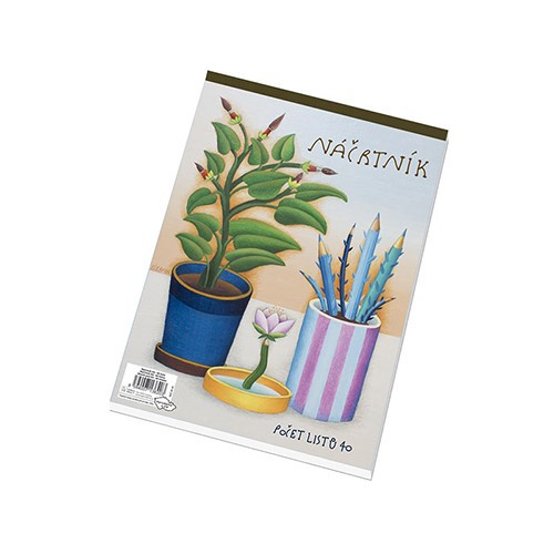 Školní náčrtník 40 listů, formát A4. Tyto bloky jsou lepené, vyrobeny z náčrtníkového papíru (recyklovaný papír, nažloutlý) - 80 g/m2 A4. Jsou vhodné pro malování obyčejnou tužkou, křídami, uhlem.