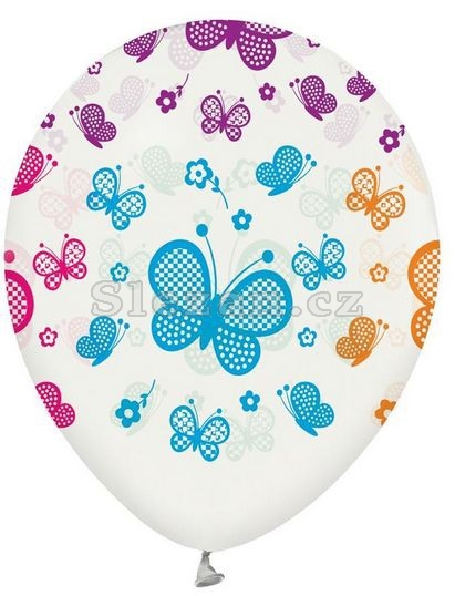 Nafukovací balónky v bílé barvě s potiskem motýlků