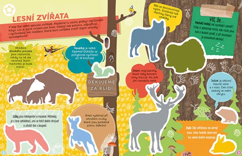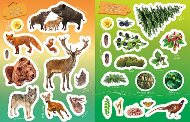 Naučná samolepková knížka obsahuje 16 tematických stran s fotografiemi a více než 100 samolepek pro dolepení.