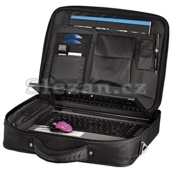 Popis zboží - prostorná polstrovaná hlavní kapsa pro notebook - odnímatelný vnitřní rozdělovač - popruh pro zajištění notebooku - malá kapsa pro kabely - oddělení na dokumenty s vnitřním uchycením - 4 malé kapsy pro CD - malá kapsa pro USB - přední kapsa s organizérem - na zadní straně průhledné okno pro štítek s adresou - kapsa pro dokumenty na zip v zadní části - popruh na trolley - nožičky pro tlumení nárazu - polstrovaný ramenní popruh - polstrovaná rukojeť - pro notebooky do 15,4" (15,6" - 40 cm) - barva: černá - materiál: polytex - vnitřní rozměry: 42 x 28 x 4 cm - hmotnost: 1300 g