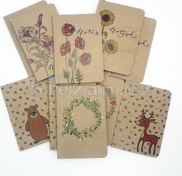Mix kraftových notesů A6 s linkovaným, tečkovaným nebo prázdným blokem. Motivy jsou namixovány náhodně bez možnosti výběru. Po objednání jednoho kusu Vám dorazí náhodný výběr jednoho motivu.
