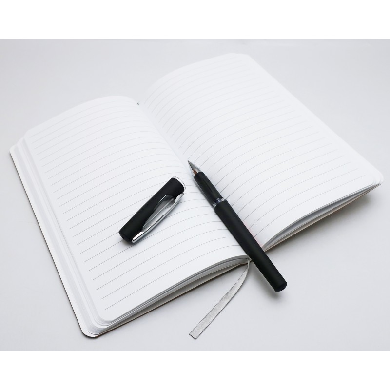 Uvnitř bytelného notesu je tečkovaný blok se stužkou vhodný pro příznivce psaní i malování.