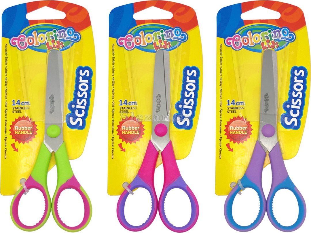 Barevné dětské nůžky s měkkým protiskluzovým gumovým gripem.