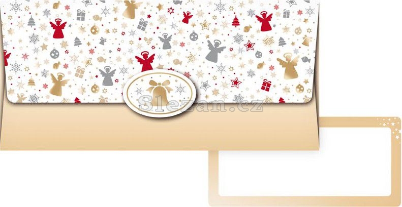 Dárková obálka na peníze s vánočním motivem a uzavíratelnou klopou.
