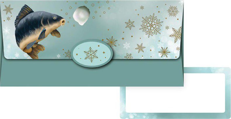 - Tato elegantní obálka na peníze s motivem kapra přináší tradiční atmosféru Vánoc v moderním a svěžím provedení.