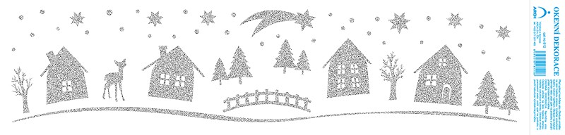 Popis Okenní folie Chaloupky - tisk stříbrnými glitry