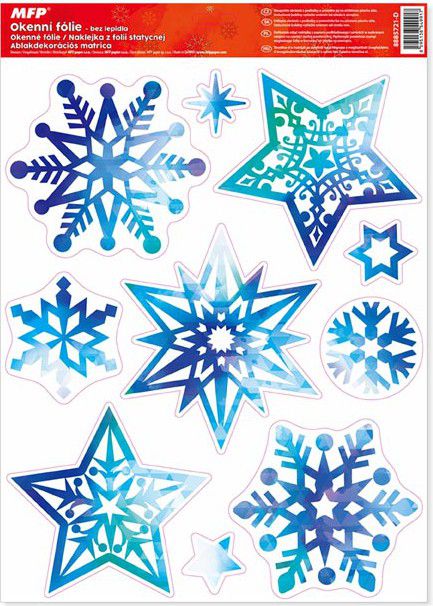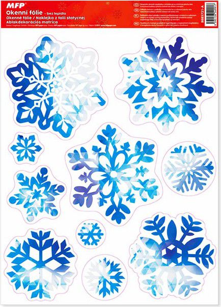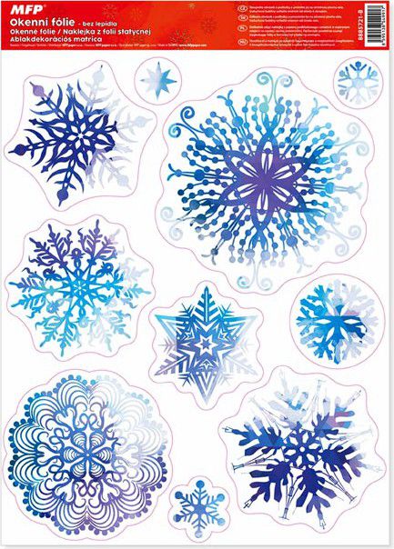 Okenní fólie vánoční modrofialové vločky s glitrem. Vyzdobte si okno těmito krásnými samolepkami na okno. Vytvoří Vám kouzelnou atmosféru domova.