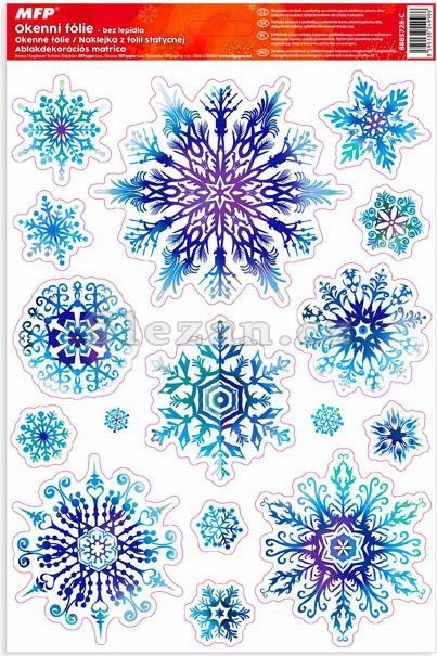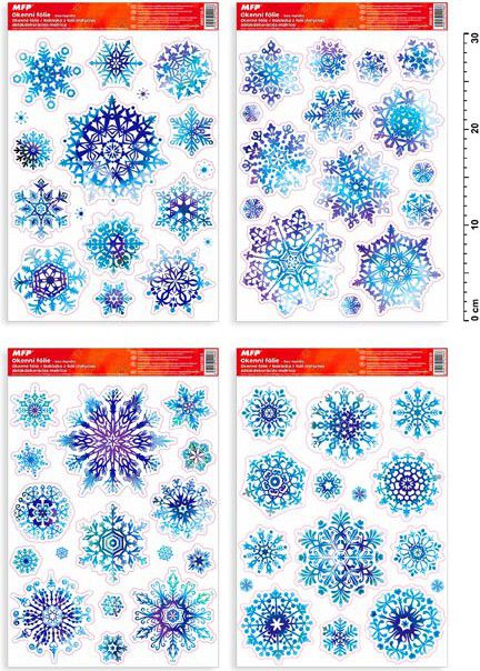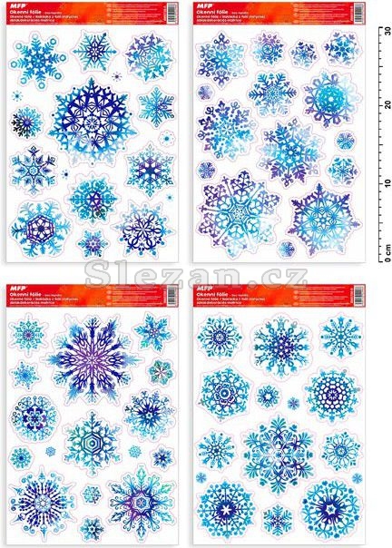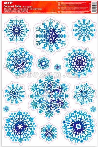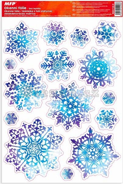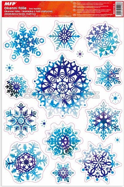 Okenní fólie vánoční modrofialové vločky s glitrem. Vyzdobte si okno těmito krásnými samolepkami na okno. Vytvoří Vám kouzelnou atmosféru domova.