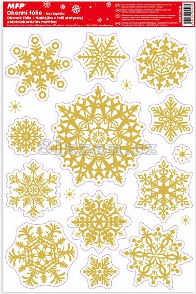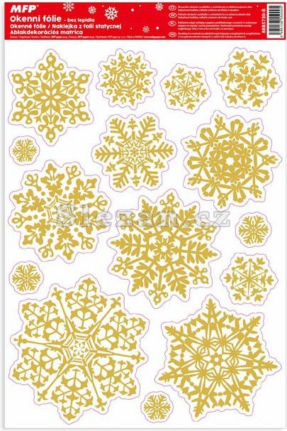 Okenní fólie vánoce s motivy vloček (zlaté) -