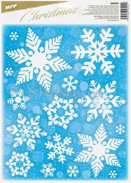 Okenní fólie glitrová ve tvaru vloček. Fólie se lehce odlepují a nalepují a nezanechávají za sebou žádné stopy lepidla. Pomocí okenních fólií si velmi snadno a levně vytvoříte vánoční atmosféru na celé svátky.