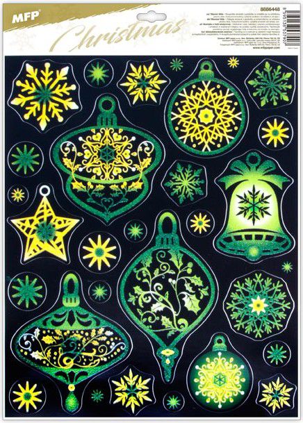 Vánoční okenní fólie glitrová s vánočními motivy v mixu barev.