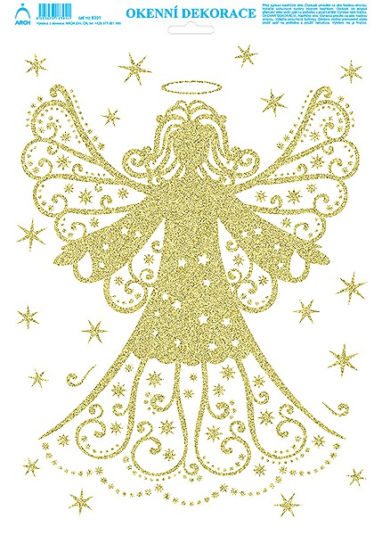 Popis Okenní folie Vánoční andílek - tisk zlatými glitry 8394-GG