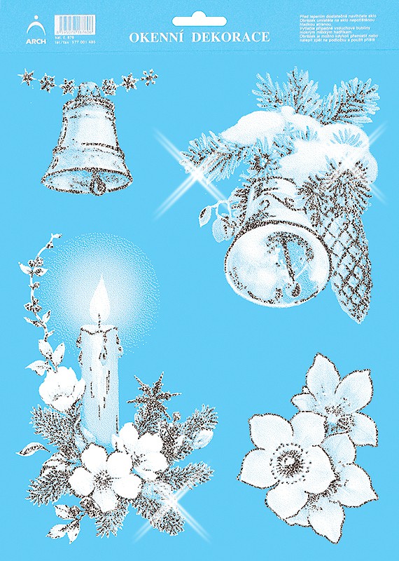 Popis Okenní folie Vánoční zvonek a svícen - se stř. glitry 884-SG