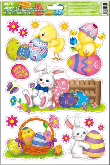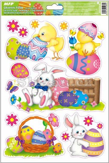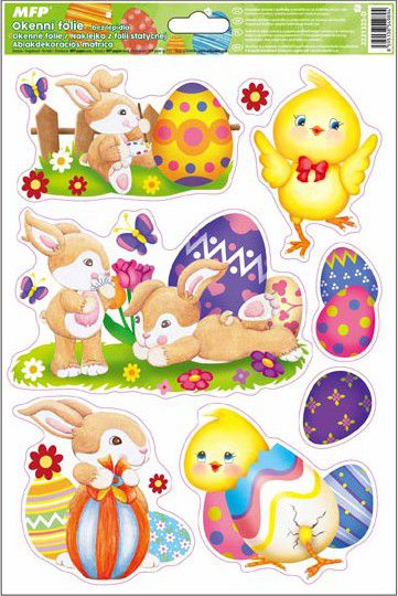 Okenní fólie - velikonoční zajíčci, kuřátka, králíčci -
