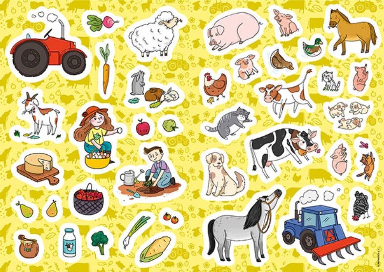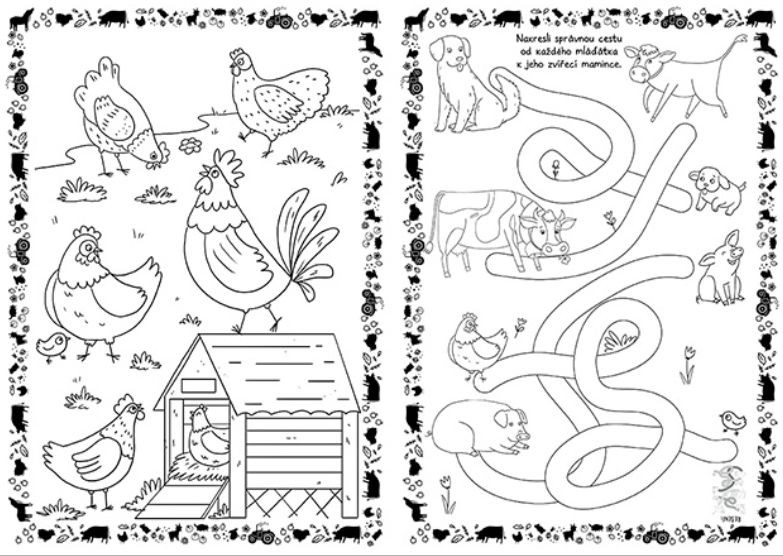 Omalovánky s motivy zvířátek z Farmy obsahují 24 stran s obrázky a oblíbenými aktivitami a více než 20 samolepek k ozdobení