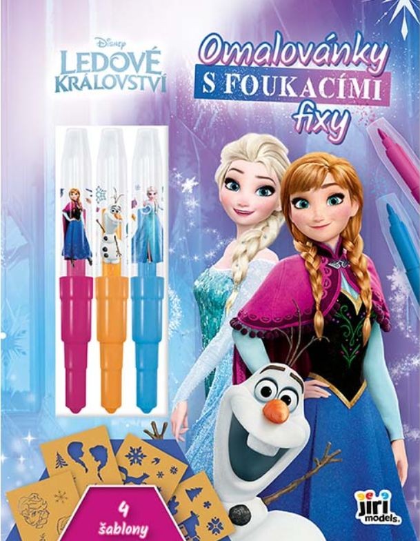 Omalovánky obsahují 16 stran s obrázky k vybarvení, 3 barevné foukací fixy a 4 šablonky.