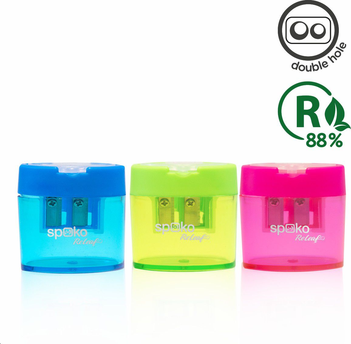 Oválné ořezávátko, které je nepostradatelným parťákem každého školního penálu. Dva otvory si poradí jak s tenkými, tak jumbo tužkami a pastelkami. Transparentní kontejner umožňuje kontrolovat množství odpadu. Praktické víčko zabraňuje vysypání obsahu. Tištěné logo na těle.