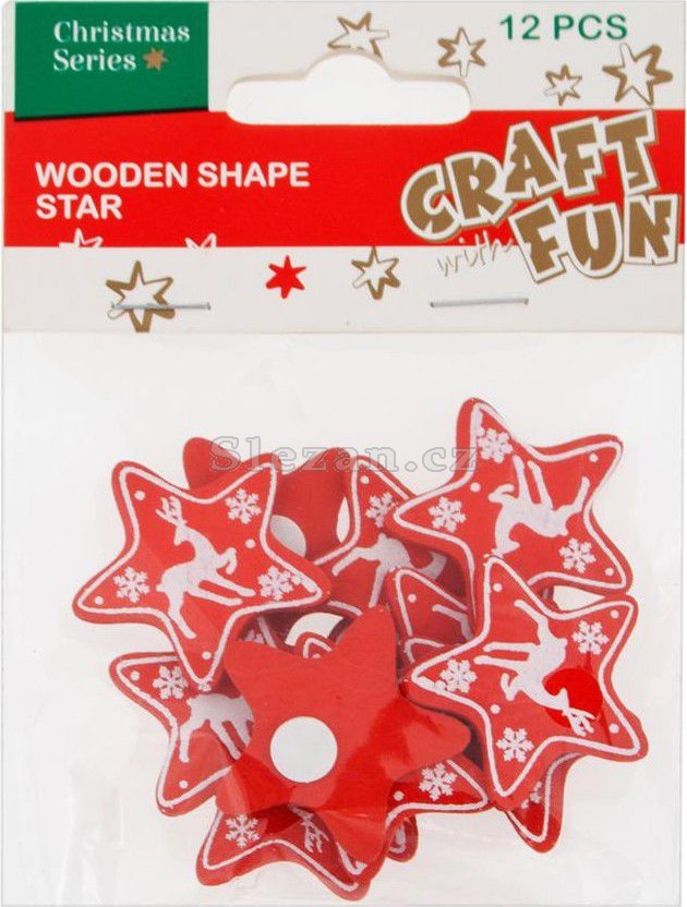 Obsah balení: 12 ks dřevěných červených hvězdiček s malovanými soby.