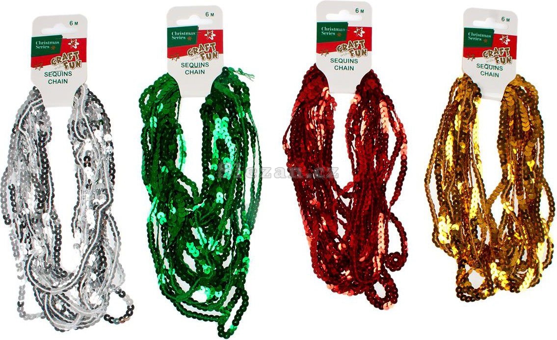 Popis Ozdobný řetěz flitrový 4 mix 6m