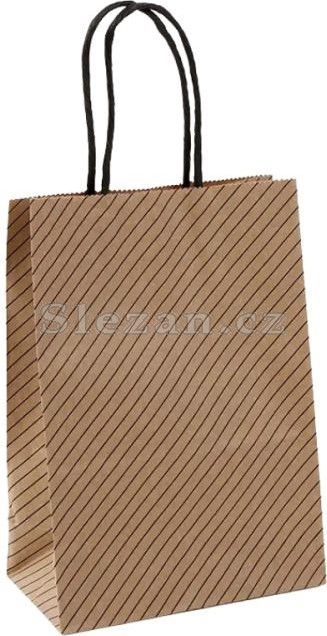 Eko papírová taška s potiskem proužků je vyrobena z hladkého papíru.
