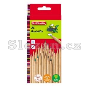 Pastelky 24 barev, šestihranné, z lipového dřeva, přírodní.