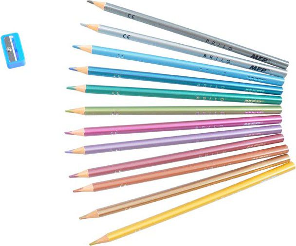 Pastelky jsou vhodné i pro leváky. Set pastelek obsahuje: - 12 ks metalických pastelek (šedá, stříbrná, 2x odstíny fialové, 2x odstíny zelené, 2x odstíny modré, růžová, 2x odstíny žluté, hnědá) - 1x ořezávátko