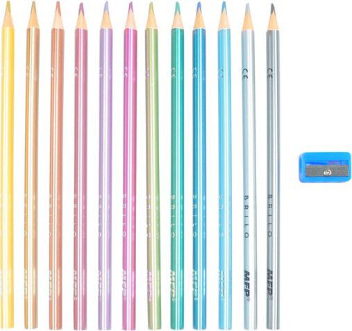 Popis pastelky BRILO 12 ks Metalické triangular s ořezávátkem 6300625