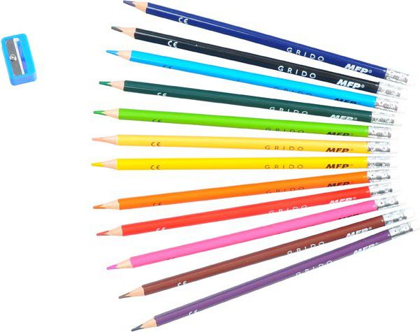 Popis pastelky GRIDO 12 ks Gumovací triangular s ořezávátkem 6300587