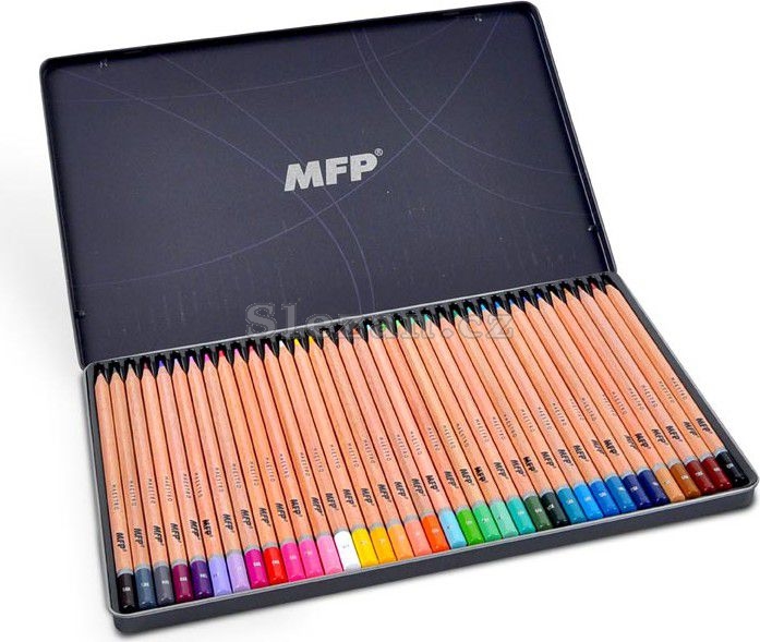 Sada 36 ks kvalitních kulatých pastelek uložených v praktické kovové krabičce.