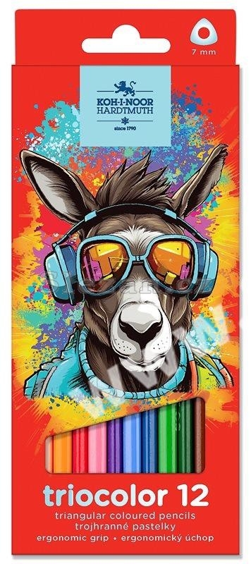 Popis Pastelky trojhranné tenké Triocolor Koh-i-noor 3132/12 motiv OSEL nelámavé, 12ks