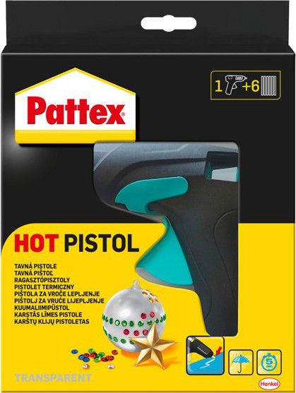 Tavná pistole v setu s patronami pro snadné a rychlé lepení dekorací nebo domácích drobných oprav. Vhodné pro fixaci dřeva, keramiky, kartonu, textilu nebo syntetického materiálu. V elektrické pistoli se tavná patrona roztaví a stisknutím kohoutku se lepidlo dávkuje. Nevhodné k lepení měkčeného PVC, PE, PP, PTFE, polystyrenu.