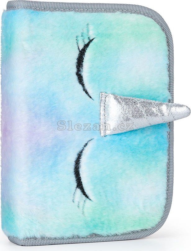 Jednopatrový školní penál s plyšovým efektem se 2 chlopněmi.