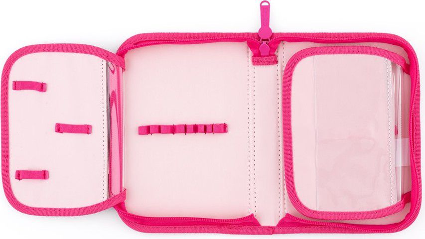 Prázdný obsahuje 25 gumových poutek pro uchycení psacích potřeb.