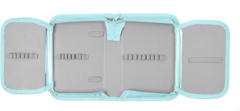 - 23 elastických poutek udrží pastelky, tužky a pera bezpečně na svém místě, zatímco tři větší poutka jsou ideální pro nůžky, ořezávátko, gumu nebo malé pravítko.
