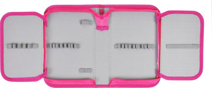 Penál obsahuje 23 poutek na pastelky, tužky a pera a 3 větší poutka např. na nůžky, gumu, ořezávátko nebo pravítko.