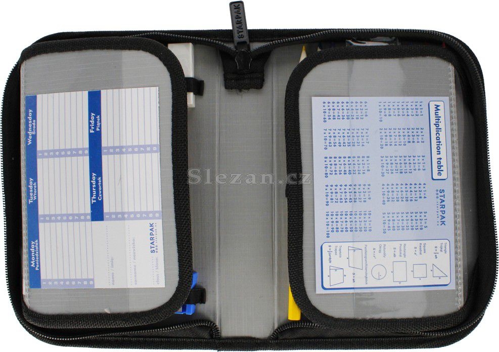 pastelky,fixy, pravítko, gumu, ořezávátko, pero, tužku, plán lekce a násobilku pro celkem více než 20 položek.