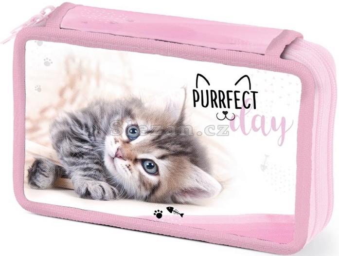 Dvoupatrový školní penál s motivem koťátka a textem na přední straně pouzdra "Purrfect Day". Vevnitř penálu jsou přihrádky a poutka na psací potřeby. Penál se uzavírá zipem a je z kvalitních a odolných materiálů.