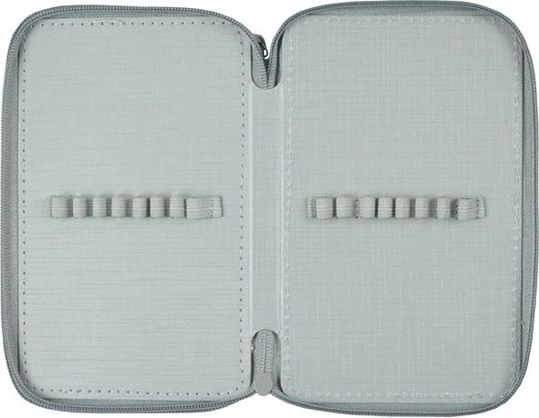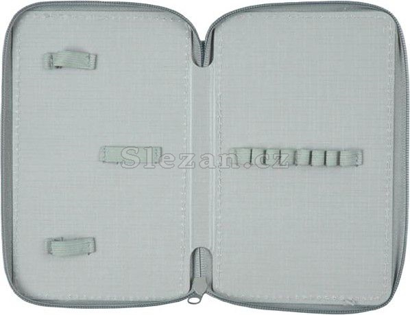- Penál obsahuje 24 poutek na psací potřeby a 3 větší např. na pravítko, ořezávátko, gumu nebo nůžky.