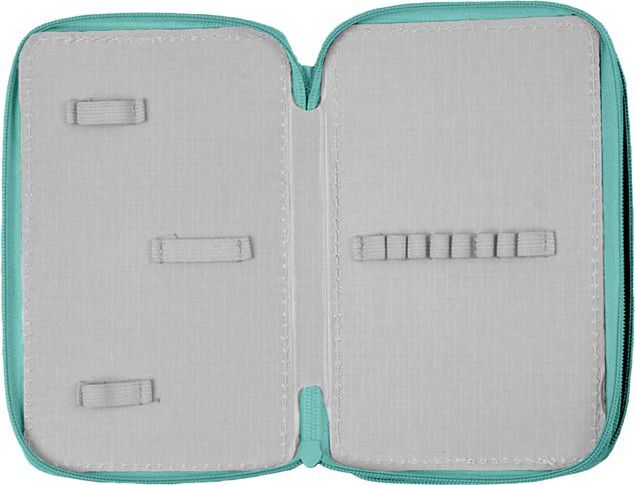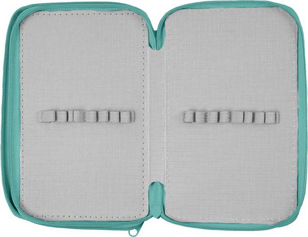 Penál obsahuje 24 poutek na psací potřeby a 3 větší např. na pravítko, ořezávátko, gumu nebo nůžky.