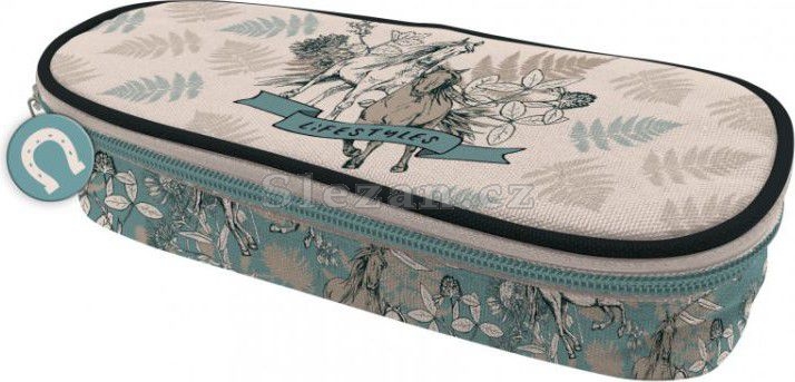 Prostorný penál s jednou klopou uvnitř s kapsou na zip a organizérem na 9 tužek.