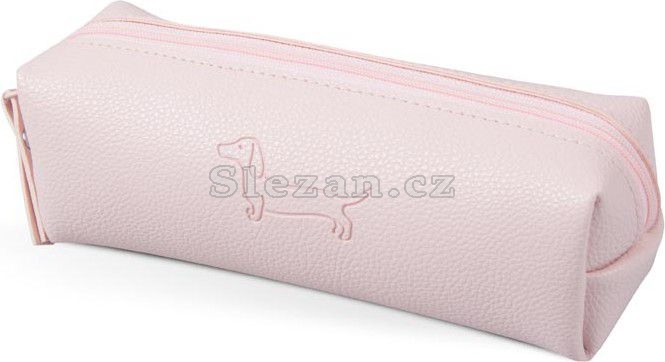 Etue mini v jemné růžové barvě zaujme minimalistickým designem a jemným reliéfem jezevčíka na povrchu z kvalitní koženky.