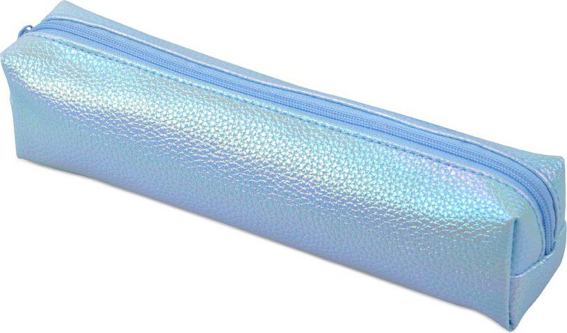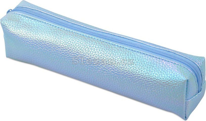 Školní penál/etue mini s perleťovým povrchem v modré barvě.
